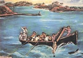 Il faut croire que le signal avait été perçu, car la chaloupe de l'île Royale arriva en un temps incroyablement court. La femme persista jusqu'au moment où sa lanterne éclaira l'officier commandant le peloton et les baïonnettes des soldats de la chaloupe. Puis elle s'assit et se mit à pleurer.Elle n'avait plus besoin de moi. Je ne bougeai pas. Certains des soldats étaient en manches de chemises, d'autres pieds nus, comme l'appel aux armes les avait trouvés. Ils passèrent à coté de mon buisson au pas de charge. La chaloupe était repartie chercher des renforts, et la femme pleurait, toute seule au bout de la jetée, la lanterne posée à terre à côté d'elle.